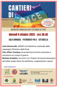 GIOVEDI' 9 OTTOBRE 2025: incontri con testimoni di pace il mattino presso il Girardi e la sera alle 20.45 presso la Sala Emmaus